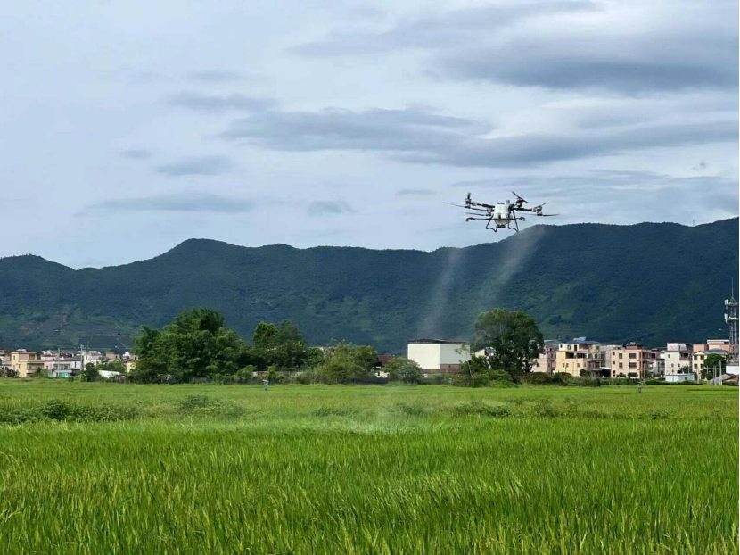 此次成立的“平安鲲鹏飞防机队”配备了13台农业无人机领域的旗舰机型“大疆T100型”,最大起飞重量达149.9公斤。大疆T100型无人机融合了AI与AR技术,具备高精度作业能力。其搭载五目鱼眼视觉系统与融合感知技术,激光雷达空间点云密度达每秒30万个,能够精确识别田间障碍,支持喷洒、播撒、吊运等多项功能,显著提升农业作业效率。经实践验证,通过无人机飞防作业,水稻、玉米等作物可实现增产10%以上。